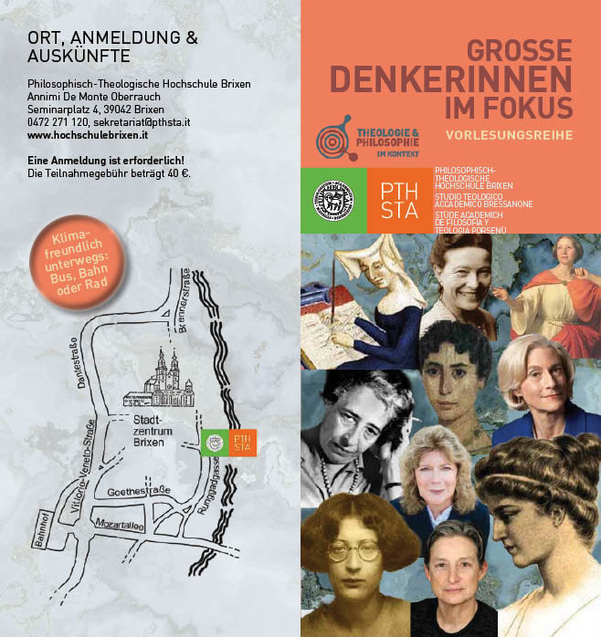 Mit der Vorlesungsreihe „Große Denkerinnen im Fokus“ rückt die Philosophisch-Theologische Hochschule Brixen Frauen der Geistesgeschichte ins Zentrum. An vier Nachmittagen werden antike Philosophinnen wie Hypatia, Diotima und Theano vorgestellt. Auch Christine de Pizan sowie Denkerinnen der Moderne wie Simone de Beauvoir, Hannah Arendt, Judith Butler, Martha C. Nussbaum, Linda T. Zagzebski und Simone Weil stehen im Mittelpunkt. Ihre Gedanken eröffnen zentrale Fragen unserer Gegenwart: Wie entstehen Geschlecht und Identität? Was bedeuten Freiheit und Verantwortung? Wem können wir vertrauen? Welche Rolle spielen Aufmerksamkeit und Urteilskraft für ein gelingendes Leben? Die Vorträge laden ein, diese Fragen im Licht großer Denkerinnen neu zu bedenken und zu beantworten.