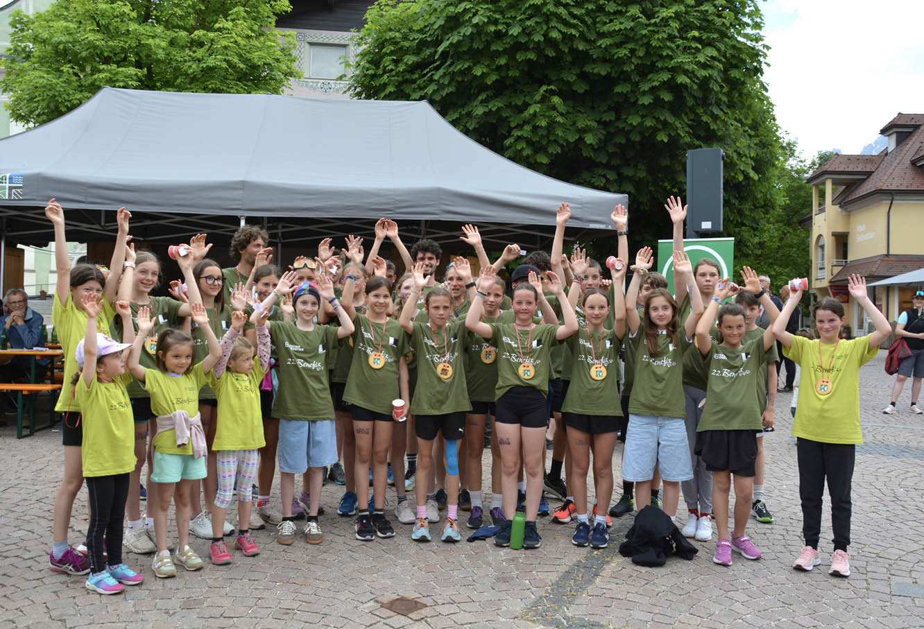 Die jüngsten Teilnehmer des Benefizlaufes und das Team GRETA von der Mittelschule Toblach