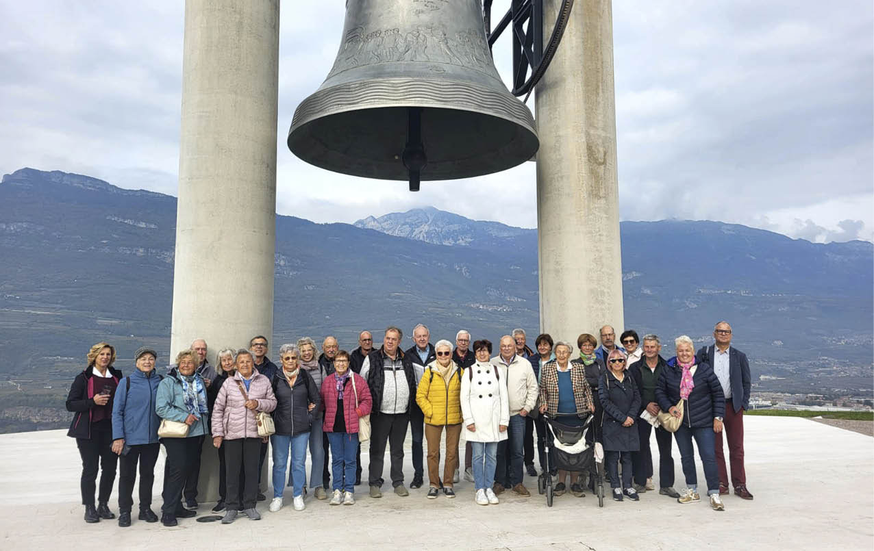 Passend zum KVW-Jahresthema „Suche Frieden und jage ihm nach“ organisierte die Ortsgruppe eine Tagesfahrt nach Rovereto, der „Stadt des Friedens“. Während des Ersten Weltkriegs schwer umkämpft, erinnern heute Beinhaus, Kriegsmuseum und Gefallenenglocke an die tragischen Ereignisse. Unser Ziel war der Miravalle-Hügel mit der großen Friedensglocke. Über Informationstafeln und einen kurzen Dokumentarfilm erhielten wir Einblicke in die Geschichte und in die Initiative, aus Kriegswaffen ein Zeichen des Friedens zu schaffen. Besonders berührend war das tägliche Mittagsgeläut mit seinen hundert Schlägen, das der Gefallenen gedenkt. Nach einem guten Mittagessen erkundeten wir die Altstadt von Rovereto individuell. Die historischen Gassen, venezianischen Paläste sowie Besuche der Erzpfarrkirche San Marco oder des Kriegsmuseums im Schloss boten abwechslungsreiche Eindrücke. Nach einem erfüllten Tag traten wir die Heimreise an.