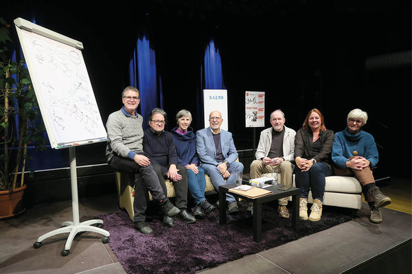 Was trage ich zum Wohl der Menschheit bei? Diese Frage bildet den Mittelpunkt des Denkens von Kambiz Poostchi, der vor Kurzem Gast der Dialogreihe „start.klar. im UFO Bruneck“ war. von links nach rechts die Projektgruppe: Gunther Niedermair (UFO Bruneck), Hans Peter Niederkofler, Monika Gatterer (KVW Bezirksvorsitzende Pustertal), Kambiz Poostchi, Markus Lobis (Moderator), Karin Sparber ...