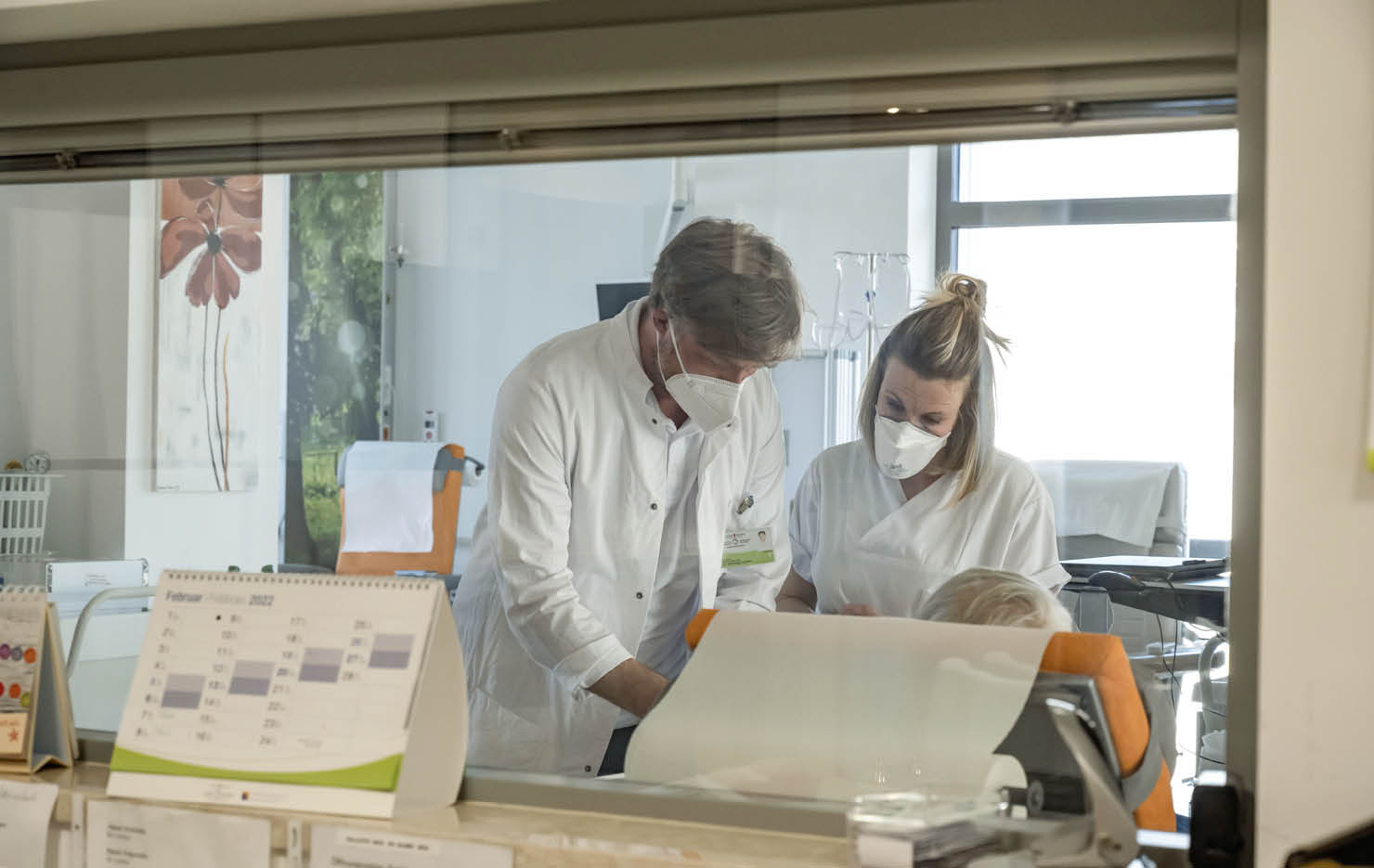 Das Team der Tagesklinik besteht aus drei Fachärzten sowie einer Ärztin in Ausbildung. Der Pflegedienst setzt sich zusammen aus neun Personen, darunter auch eine Breast-Care-Nurse. Die Basis der Pflege-Tätigkeit ist eine patientenorientierte, individuelle Betreuung, unter anderem durch eine „Bezugspflegeperson“. Die Leistungen sind umfassend und reichen von Informations- und Aufklärungsgesprächen, diagnostischer Blutentnahmen, der Verabreichung sämtlicher parenteraler Systemtherapien und deren Überwachung über die Verabreichung von Blut und Blutderivaten und der Medikation von Picc- und Port a Cath-Kathetern bis zur Koordination der verschiedenen Dienste und Vereinbarung von Terminen u.a.m. Die lichtdurchfluteten, freundlichen Räumlichkeiten mit Blick auf die umliegende Bergwelt bieten insgesamt 17 Behandlungsplätze.