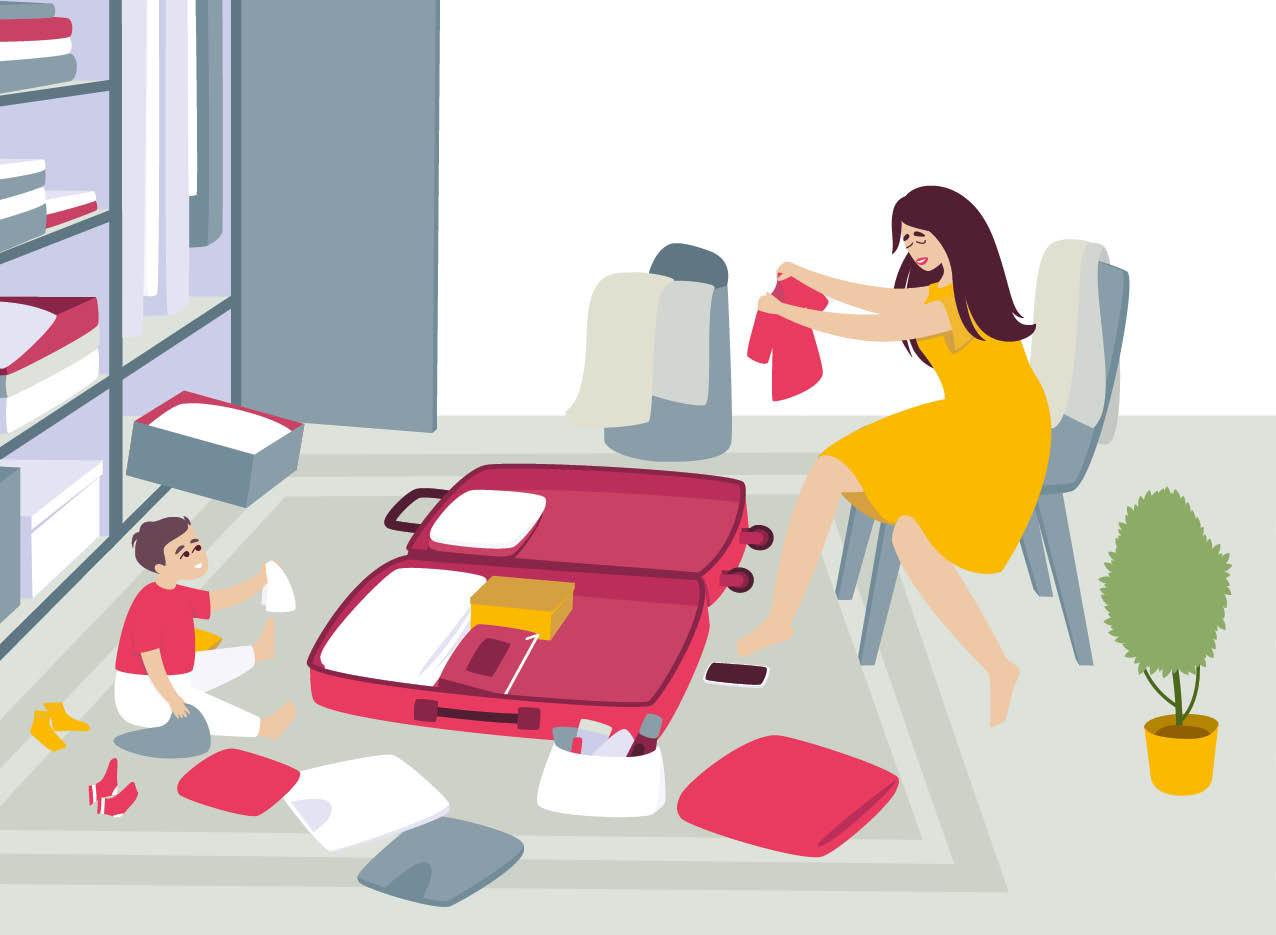 Während sich Mama murmelnd das Reisegepäck in verschiedenen Stapeln zurechtlegt, will die Fünfjährige schon mitbestimmen, welcher Schwimmanzug mit in den Koffer soll. Ach was, am liebsten doch gleich alle. Uff. Der Dreijährige wühlt im Socken- und Unterwäschestapel, die Hälfte liegt gleich am Boden, großartiges Durcheinander. Ungern, aber schlussendlich doch werden die beiden vor dem Fernseher geparkt. Durchatmen. Und los geht es, von vorne. Was noch nicht eingepackt werden kann, wird wiederum auf einem „Schwindelzettel“ notiert: Schnuller, Kuschelkissen, Lieblingspferd. Nur am nächsten Morgen nichts vergessen, das hätte fatale Konsequenzen.