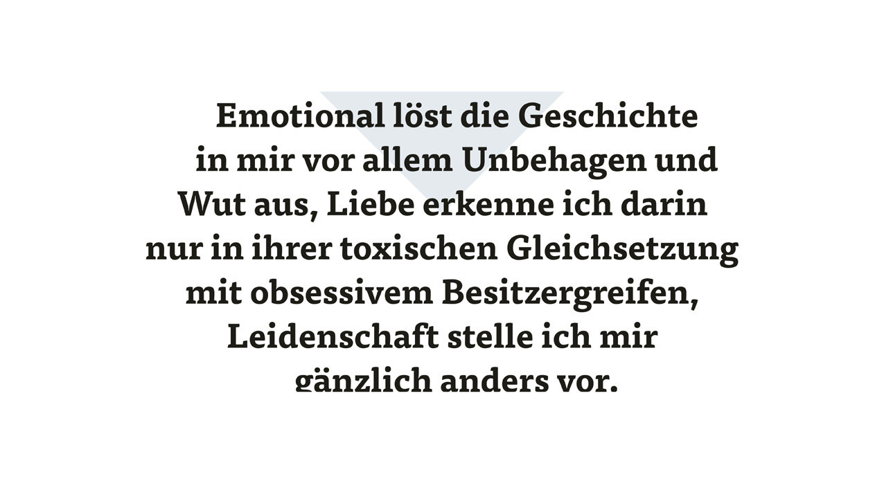 Könnte ich hier entscheiden, würde Christine in ihrer Garderobe sagen: „Mit Macht zu spielen und sich vom ‚Dunklen‘ angezogen zu fühlen, ist in Rollenspielen okay – vielleicht steh ich da ja auf Unterwerfung! Im echten Leben jedenfalls nicht. Und jetzt verpiss dich mit deinen Ko-Tropfen und geh diesmal durch die Tür, statt durch den Spiegel einzubrechen. Ich habe heute noch was vor.“ Das Date mit Raoul verläuft gut, sie teilen sich sogar den Nachtisch. Und falls sie dann beide Bock drauf haben, gehen sie zusammen nach Hause und haben einvernehmlichen Sex. Vielleicht kinky, vielleicht auch nicht – sie fragen sich ganz einfach nach ihren Vorlieben. Vielleicht bleibts beim One-Night-Stand, vielleicht auch nicht. Wer weiß das schon nach dem ersten Date.