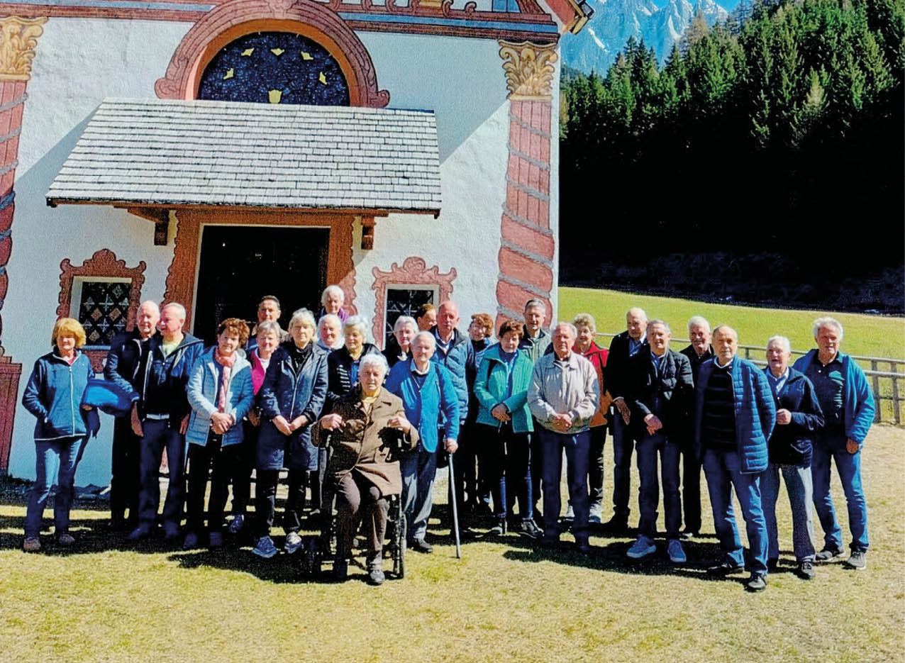 Nicht ohne Grund hatte man das Kirchlein St. Johann in Ranui in St. Magdalena/Villnöss für die traditionelle österliche Einstimmung in der Karwoche gewählt: ist es doch eines der schönsten Landschaftsmotive vor der Kulisse der imposanten Geislergruppe. Überraschend viele Mitglieder, darunter die zwei Ältesten - zugleich Gründungsmitglieder der Seniorengruppe, haben daran teilgenommen. Vor Beginn der Besinnung wurde uns von Peter Radmüller die Entstehung des Kirchleins im Jahre 1744 durch die Nachkommen des Michael Jenner, ehemaliger Besitzer des nahe gelegenen, stattlichen Ansitzes Ranui und Besitzer des Bergwerkes am Villanderer Berg, übermittelt. Unsere Schriftführerin Monika Psaier hatte eine Andacht vorbereitet, wobei die Stationen des Kreuzweges gesungen wurden. Als Abschluss trafen wir uns zum Pizzaessen im „Dreimädlhaus“, wo der Tag für einige mit einem „Karterle“ endete.