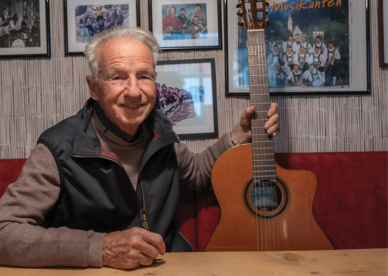 Tornata la voce, per quanto diversa e più ruvida, nel maggio 2023 ha trovato il coraggio di risalire su un palco. La musica lo accompagna fin da ragazzo: a 16 anni si è esibito per la prima volta con la chitarra, più tardi ha suonato la grancassa nella banda del paese, ha fondato un gruppo, cantato brani dei Rolling Stones. Con l’arrivo dell’Austropop negli anni Settanta ha iniziato a scrivere canzoni proprie – in sudtirolese, italiano e ladino – ottenendo grandi successi.